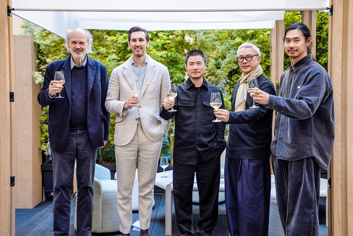 YARDCOM院半海外总经理马佳鑫(中),SAOTA创始人Stefan Antoni(右二),梁志天设计集团创始人梁志天(左二),无间设计创始人吴滨(左一),品物流形PINWU、融设计图书馆创始人张雷(右一)