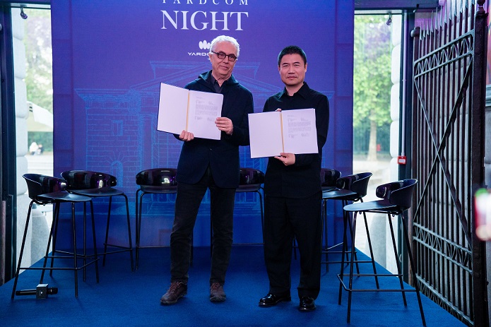 YARDCOM院半品牌创始人、董事长马庆江(右一)与STEFANO BOERI INTERIORS创始人Stefano Boeri(左一)进行合作签约